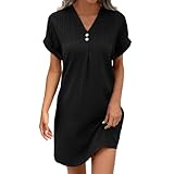 - Strandkleid Damen - Damen Strandkleid V-Ausschnitt design mit Knopf, sowie funktionalen Taschen,Kurzarm,...